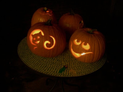 Mark's parents were supposed to come this weekend, but because of Mark's presentation being due on Monday and the traffic due to race weekend, they decided not to. So I had planned to do a nice, pretty, yummy dinner for Mark on Saturday night (amidst the trick-or-treaters). I went to the store and got all the food ... the menu was going to be Stuffed Cornish Hens, Roasted Garlic Mashed Potatoes, Candied Carrots, and Apple Pecan Cobbler with Vanilla Ice Cream for dessert. Yum, right? Well, I made the apple pecan cobbler and roasted the garlic with no problem, and while they were cooking, I put the hens in a sink of cold water to thaw. (All they had was frozen at Publix, and the nice Publix meat man said they'd take about an hour to thaw.) So the cobbler was done, and the birds were ready to be stuffed and put in the oven - so I thought. I opened them up and everything was thawed but the inside - I think it might have been the gibblets? I couldn't tell. But they were frozen SOLID. Now, I've never actually made cornish hens before, which might have been my first mistake, making something new for a special occasion. But I didn't think it would be that difficult. It was already like 6:30 at that point, and the hens would need to bake for an hour, and add the extra thawing time, and considering I hadn't made any other part of the meal yet - it wasn't good. Plus I was already hungry, which made it worse. My blood pressure rose, my blood sugar dropped, and I was just not happy. So I ditched my brilliant plan, ate some chips and salsa, stuck the birds back in the fridge to (hopefully) thaw overnight, and started over. We ended up having salmon Caesar salad that turned out splendidly, and I just rearranged my little menu plan for the week, and we had some good wine and watched a movie, so crisis was averted. But I'm still a bit upset about the lack of sweet little browned cornish hens on Mark's birthday. Oh well... c'est la vie, right?